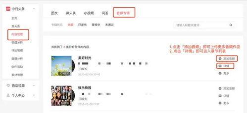 亲爱的读者们,你是否曾在某个瞬间,被某个声音深深吸引?是不是好奇过,如何在今日头条上也能捕捉到那些美妙的声音呢?今天,就让我带你一起探索,如何在今日头条上听声音,让你的耳朵也来一场说走就走的旅行吧!